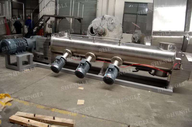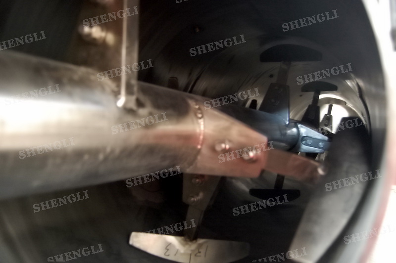 描述:?jiǎn)屋S連續(xù)式攪拌機(jī)臥式安裝,進(jìn)行連續(xù)式生產(chǎn)模式,推進(jìn)槳葉配合高速飛刀有效打散、混合物料。設(shè)備主軸、飛刀主軸采用氣密封,杜絕粉料泄露。設(shè)備配置液體噴頭,可霧化加液。