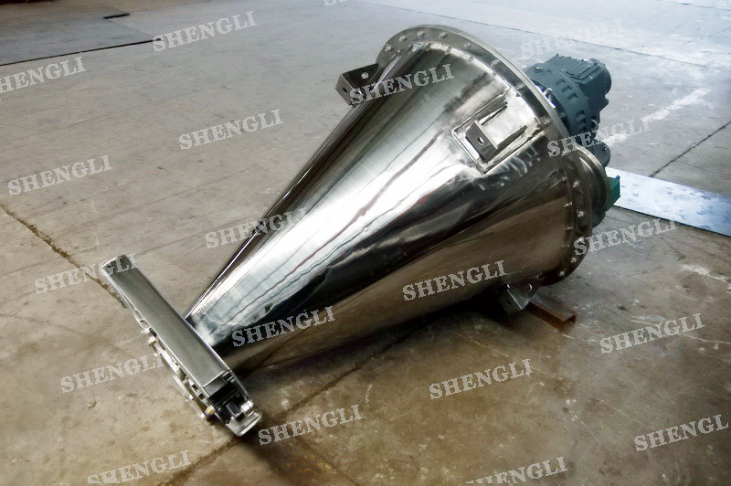 描述:錐形雙螺旋混合機(jī)內(nèi)部安裝非對(duì)稱傾斜螺旋,雙螺旋自身旋轉(zhuǎn),提升物料,并有公轉(zhuǎn)減速箱驅(qū)動(dòng),沿錐體中心軸公轉(zhuǎn),360度攪拌物料,擁有非破壞性攪拌以及快速且無(wú)殘留卸料的特點(diǎn)。該設(shè)備配置氣動(dòng)錯(cuò)位閥,內(nèi)外表面做鏡面處理,錐體中心軸加噴液裝置。