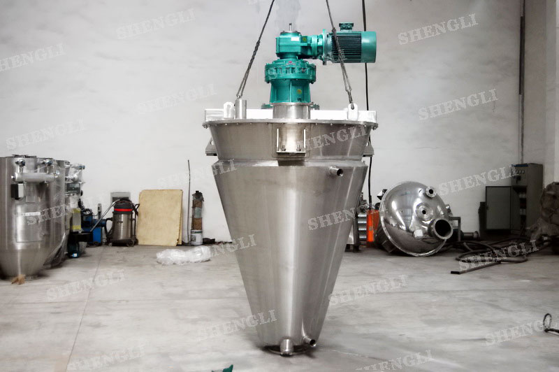 描述:雙螺旋錐形混合機內(nèi)部安裝非對稱傾斜螺旋,雙螺旋自身旋轉(zhuǎn),提升物料,并有公轉(zhuǎn)減速箱驅(qū)動,沿錐體中心軸公轉(zhuǎn),360度攪拌物料,擁有非破壞性攪拌以及快速且無殘留卸料的特點。該設備配置內(nèi)加熱夾套,內(nèi)外表面做拉絲處理,錐體中心軸加噴液裝置。