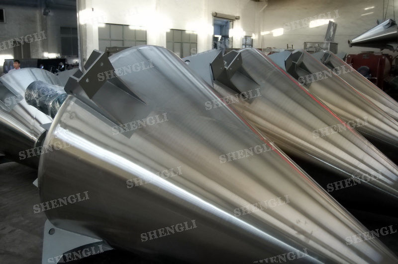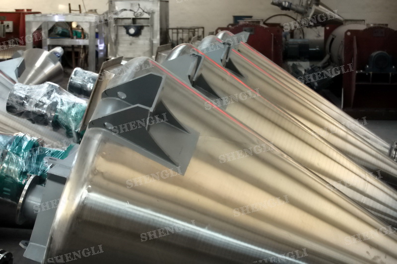 描述:錐形混合機內(nèi)部安裝非對稱傾斜螺旋,雙螺旋自身旋轉(zhuǎn),提升物料,并有公轉(zhuǎn)減速箱驅(qū)動,沿錐體中心軸公轉(zhuǎn),360度攪拌物料,擁有非破壞性攪拌以及快速且無殘留卸料的特點。該設備配置手動錯位閥,內(nèi)外表面做拉絲處理。