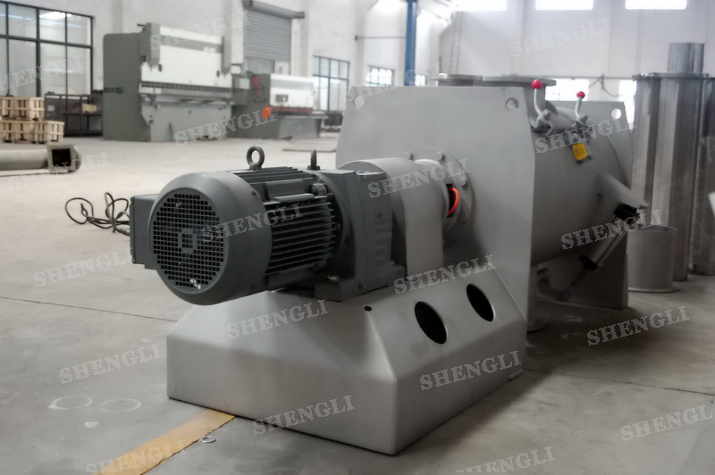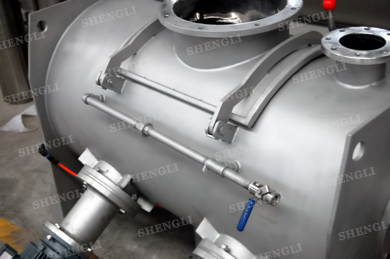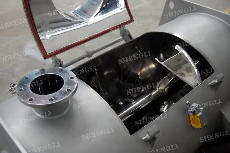 工作原理:犁刀式混合機(jī)采用臥式圓柱筒體,內(nèi)設(shè)平行主軸,主軸上安裝若干犁式刀頭,通過較快的旋轉(zhuǎn)速度,分割、重合物料,實現(xiàn)快速攪拌的功能,常結(jié)合1500-3000轉(zhuǎn)高速剪切飛刀相互作用。