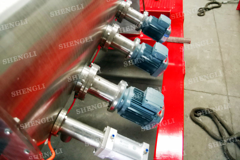 設(shè)備配置:配置SEW變頻電機(jī)K系列減速機(jī),直角安裝;搭載三臺3000轉(zhuǎn)每分鐘的高速飛刀;開設(shè)快開式檢修門;出料口采用氣動錯位閥;主軸與飛刀主軸采用氣密封;筒體上設(shè)氣動在線取樣閥;設(shè)備內(nèi)表面鏡面拋光、外表面拉絲亞光。