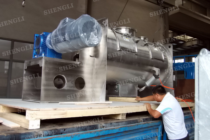工作原理:犁刀攪拌機(jī)采用臥式圓柱筒體,內(nèi)設(shè)平行主軸,主軸上安裝若干犁式刀頭,通過較快的旋轉(zhuǎn)速度,分割、重合物料,實(shí)現(xiàn)快速攪拌的功能,常結(jié)合1500-3000轉(zhuǎn)高速剪切飛刀相互作用。