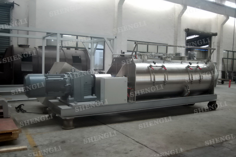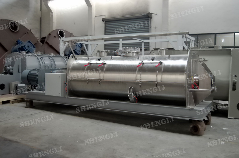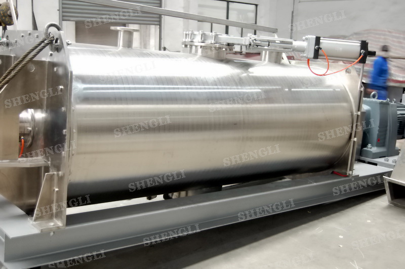 工作原理:犁刀臥式混合機采用臥式圓柱筒體,內(nèi)設(shè)平行主軸,主軸上安裝若干犁式刀頭,通過較快的旋轉(zhuǎn)速度,分割、重合物料,實現(xiàn)快速攪拌的功能,常結(jié)合1500-3000轉(zhuǎn)高速剪切飛刀相互作用。