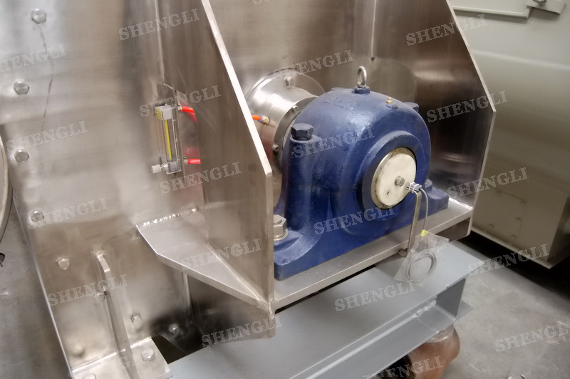 設(shè)備配置:配置SEW品牌R系列減速機,平行安裝;筒側(cè)開設(shè)快開式檢修門附安全開關(guān);出料口采用氣動翻板閥;筒體上設(shè)置噴液噴頭;設(shè)備主軸采用氣密封;設(shè)備內(nèi)、外表面拉絲亞光。
