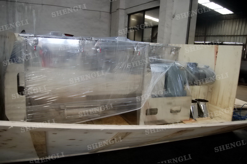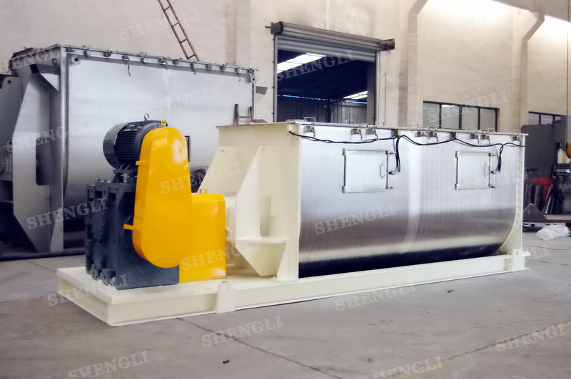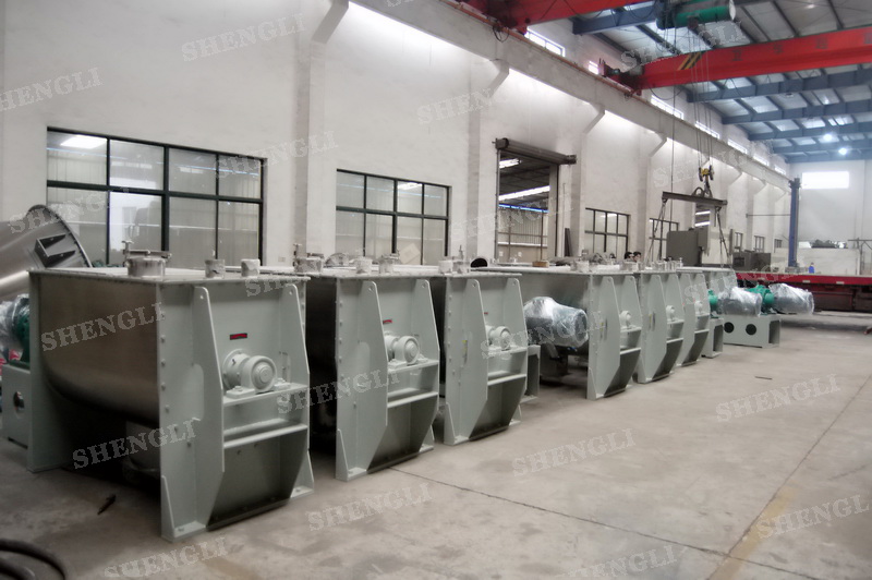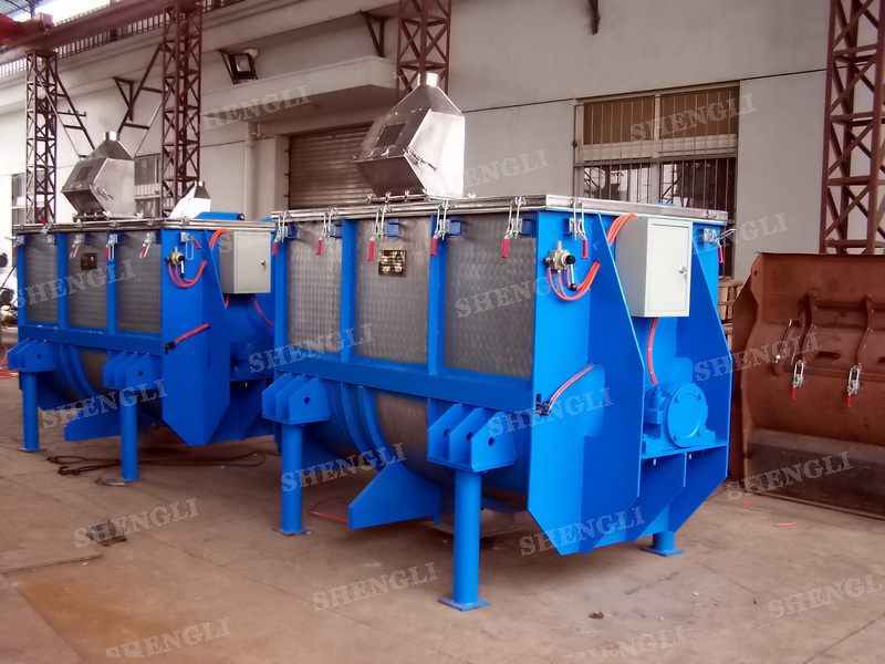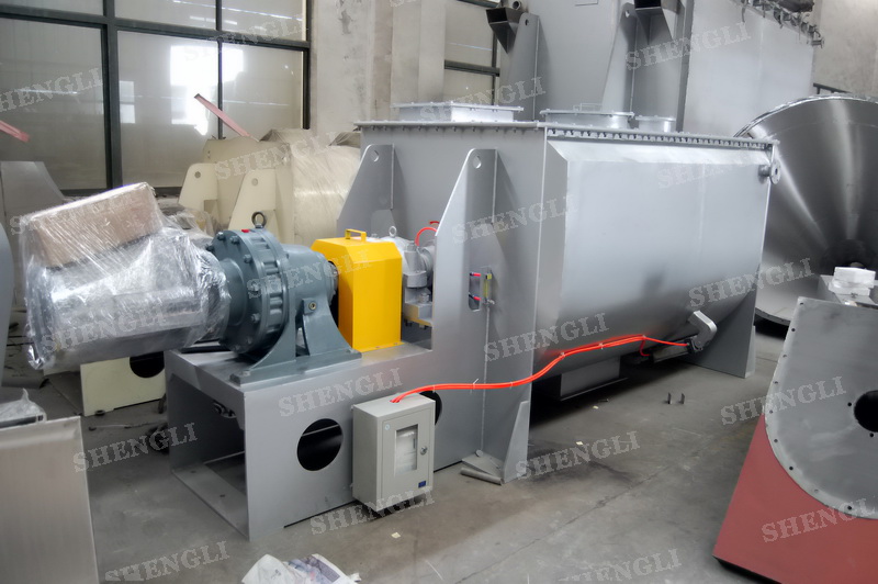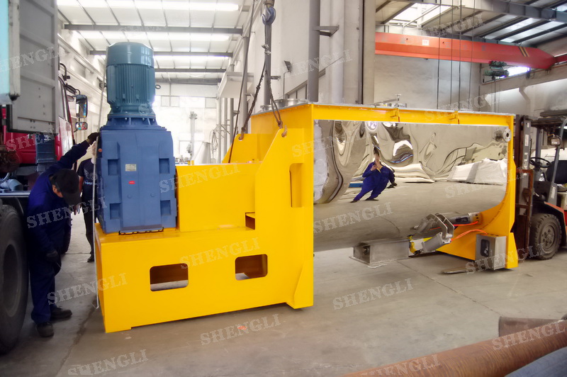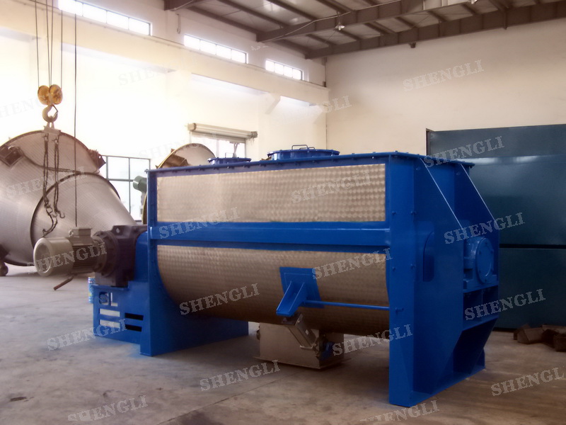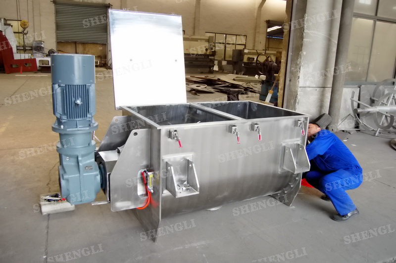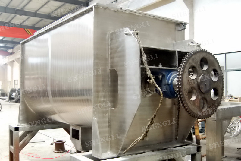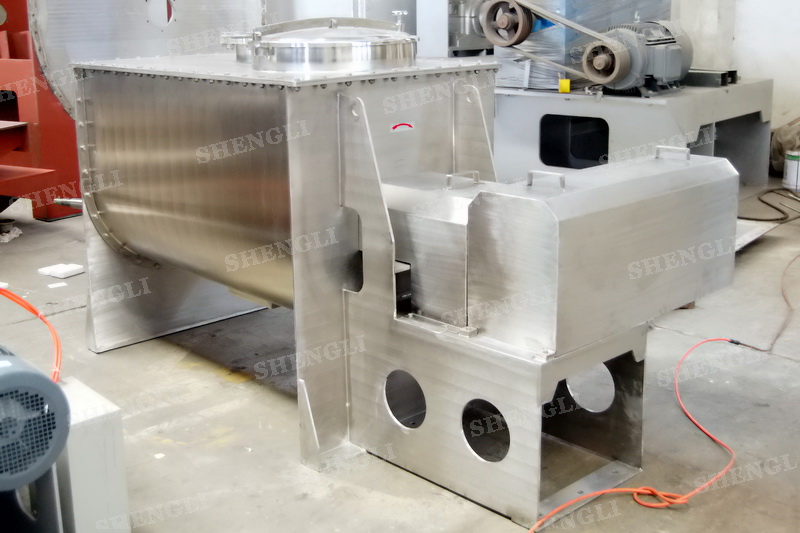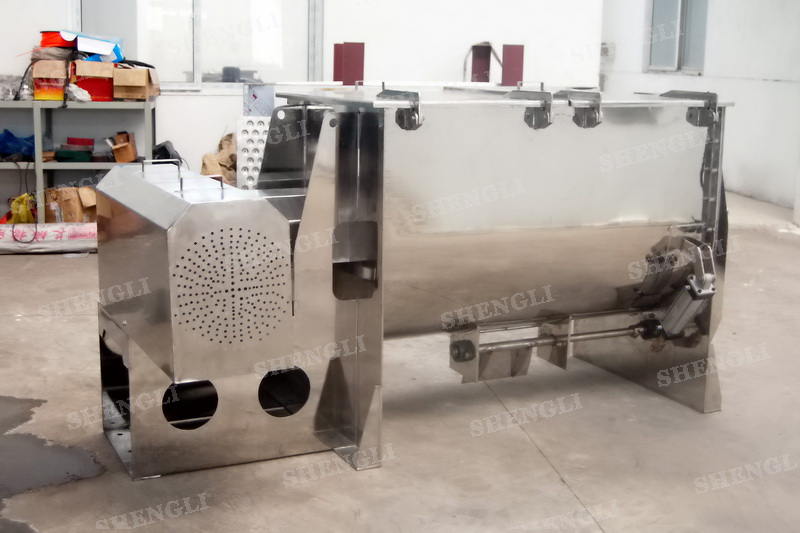 工作原理:螺帶混合機采用U型筒體,內(nèi)裝平行主軸,主軸上安裝正反雙向的盤條螺帶,不同維度螺帶分內(nèi)螺帶與外螺帶,物料在螺帶的驅(qū)使下反復(fù)參混,能夠快速高效的混合。