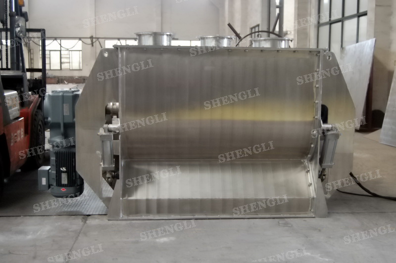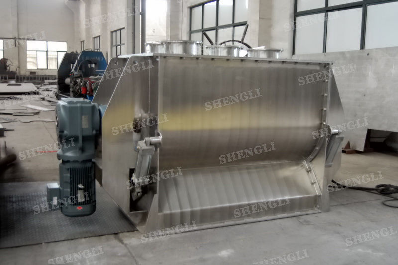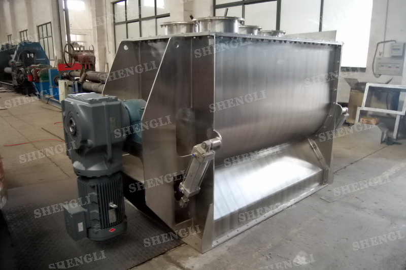 工作原理:螺帶攪拌機采用U型筒體,內(nèi)裝平行主軸,主軸上安裝正反雙向的盤條螺帶,不同維度螺帶分內(nèi)螺帶與外螺帶,物料在螺帶的驅(qū)使下反復參混,能夠快速高效的混合。