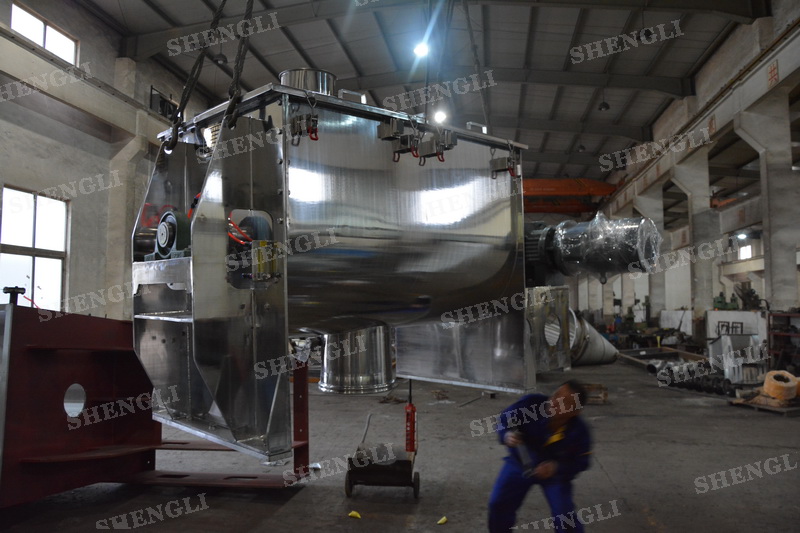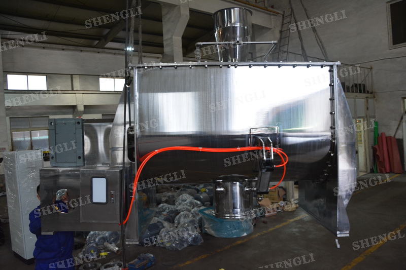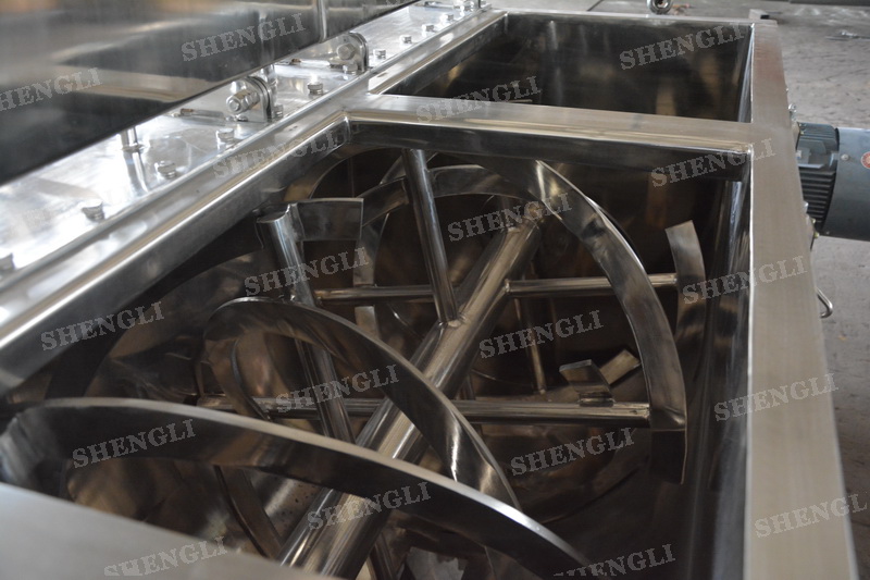 工作原理:螺帶式混合機采用U型筒體,內(nèi)裝平行主軸,主軸上安裝正反雙向的盤條螺帶,不同維度螺帶分內(nèi)螺帶與外螺帶,物料在螺帶的驅(qū)使下反復(fù)參混,能夠快速高效的混合。