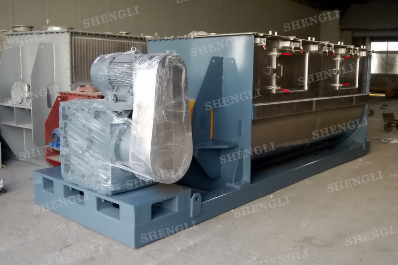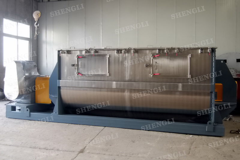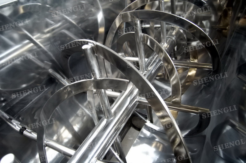 工作原理:螺帶臥式混合機(jī)采用U型筒體,內(nèi)裝平行主軸,主軸上安裝正反雙向的盤條螺帶,不同維度螺帶分內(nèi)螺帶與外螺帶,物料在螺帶的驅(qū)使下反復(fù)參混,能夠快速高效的混合。