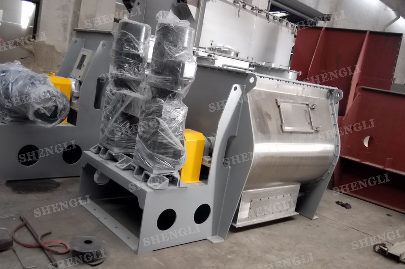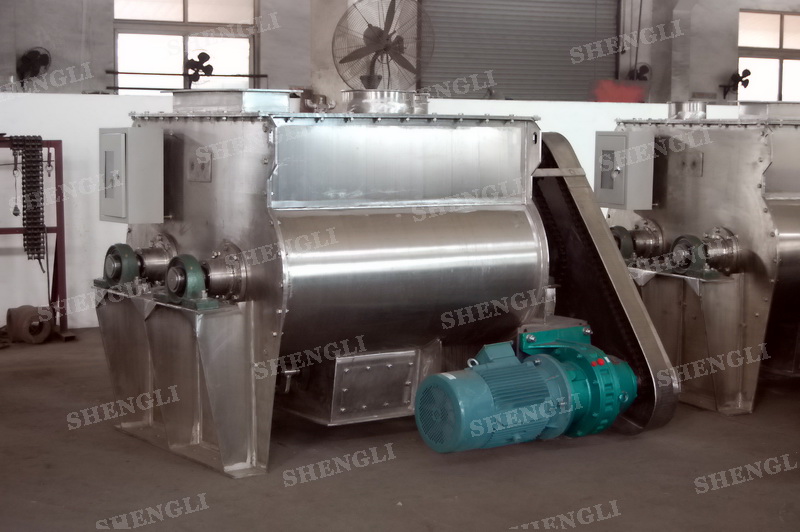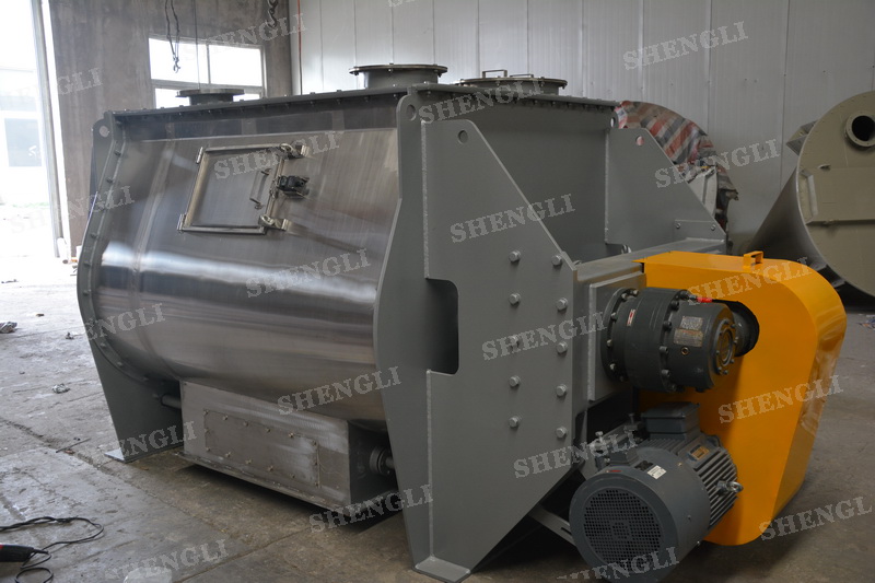 工作原理:無重力混合機采用雙U型筒體,內(nèi)裝平行的雙主軸,主軸設有對稱的多組槳葉,其雙軸的運行軌跡部分重合形成嚙合空間,雙軸在受雙電機同步驅(qū)動,同步的對稱向外翻攪物料,致使物料能夠達到瞬間失重點,該設備具備高效物料無差別的混合能力。