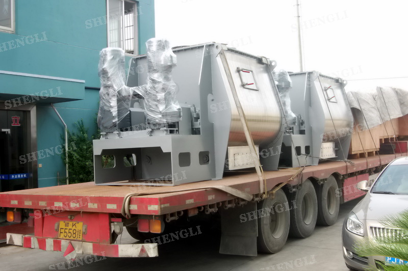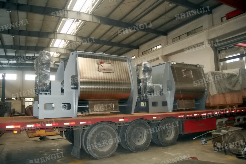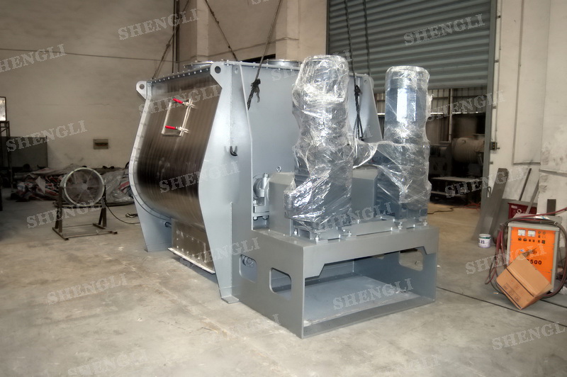 工作原理:臥式干粉攪拌機采用雙U型筒體,內(nèi)裝平行的雙主軸,主軸設有對稱的多組槳葉,其雙軸的運行軌跡部分重合形成嚙合空間,雙軸在受雙電機同步驅(qū)動,同步的對稱向外翻攪物料,致使物料能夠達到瞬間失重點,該設備具備高效物料無差別的混合能力。