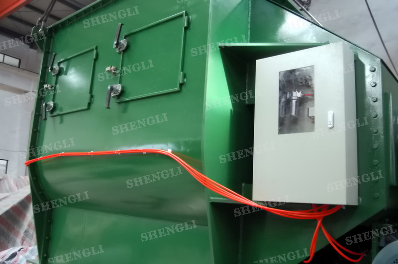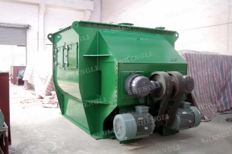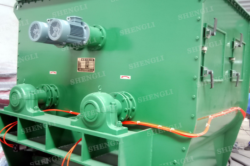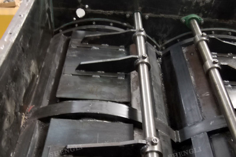 工作原理:雙軸攪拌設(shè)備采用雙U型筒體,內(nèi)裝平行的雙主軸,主軸設(shè)有對稱的多組槳葉,其雙軸的運行軌跡部分重合形成嚙合空間,雙軸在受雙電機(jī)同步驅(qū)動,同步的對稱向外翻攪物料,致使物料能夠達(dá)到瞬間失重點,該設(shè)備具備高效物料無差別的混合能力。