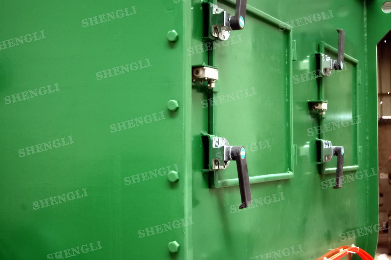 設(shè)備配置:設(shè)備搭載雙驅(qū)動同步行星齒輪減速機(jī);設(shè)備主軸采用填料密封;筒側(cè)雙向開設(shè)檢修門;筒體底部配置氣動雙翻板閥;